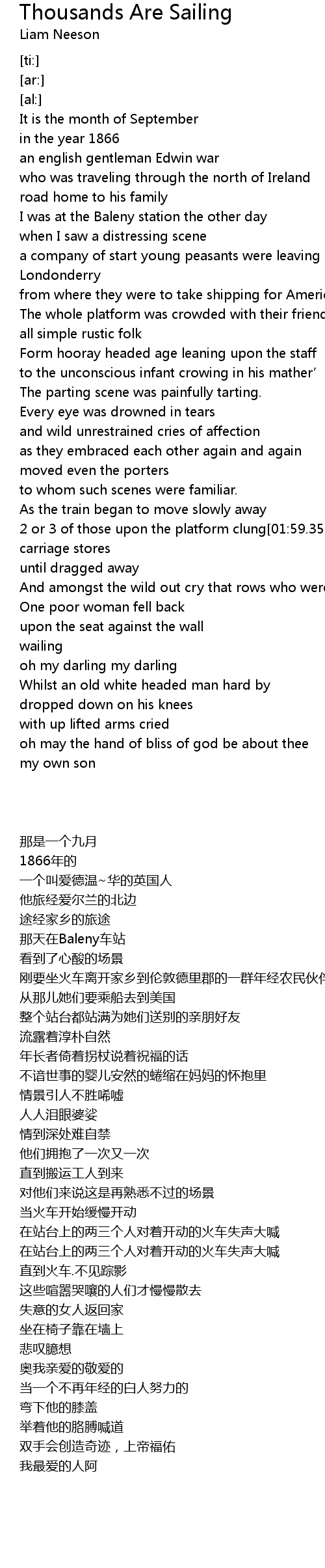 Chords ratings diagrams and lyrics. Thousands Are Sailing Lyrics The island it is silent now But the ghosts still haunt the waves And the torch lights up a famished man Whom fortune could not save Did you work upon the railroad Did you rid the streets of crime Were your dollars from the White. Planxty Thousands Are Sailing Lyrics.